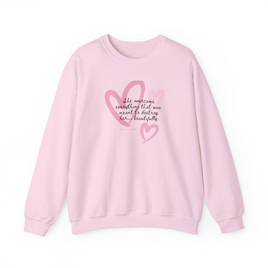 She overcame everything that was meant to destroy her.. beautifully ladies inspirational sweatshirt