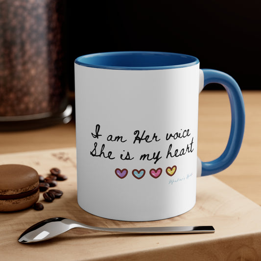 I am his voice, he is my heart, Mom Advocate 2 tone Accent Coffee Mug, 11oz