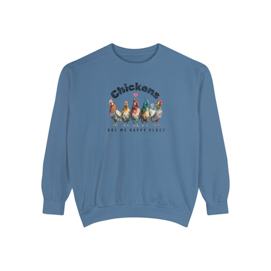 Chickens are my happy place, Ladies Garment-Dyed Sweatshirt.