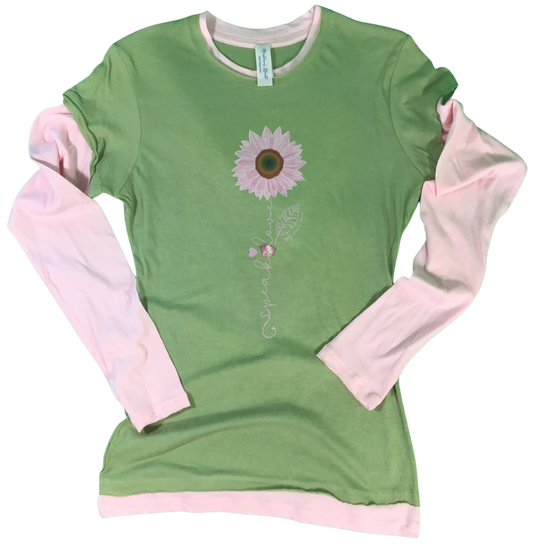 Montana's Heart two-fer Long sleee tee shirt with Sunflower image