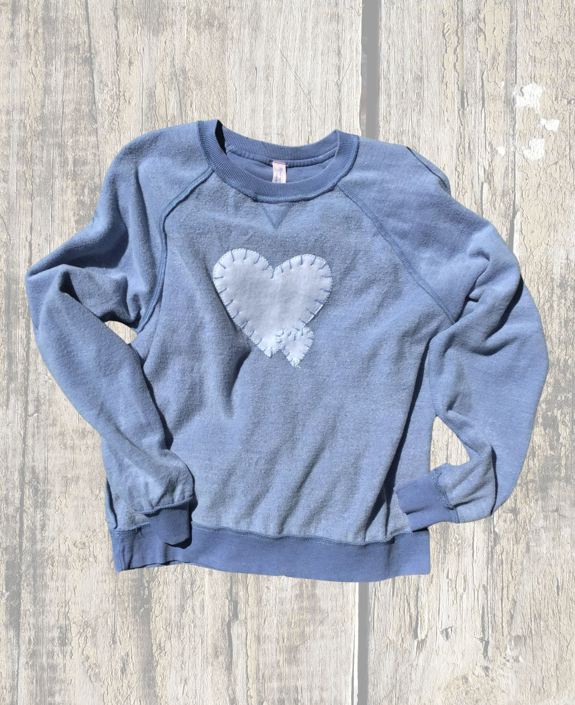 Montana's Heart inside out sweatshirt with 2 whipstitch heart detail